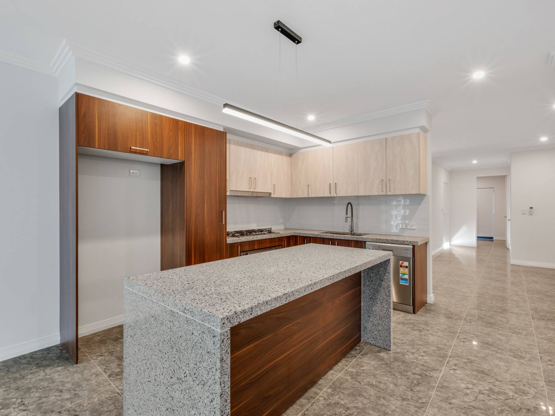-600mm by 600mm glazed porcelain tiling to main living area