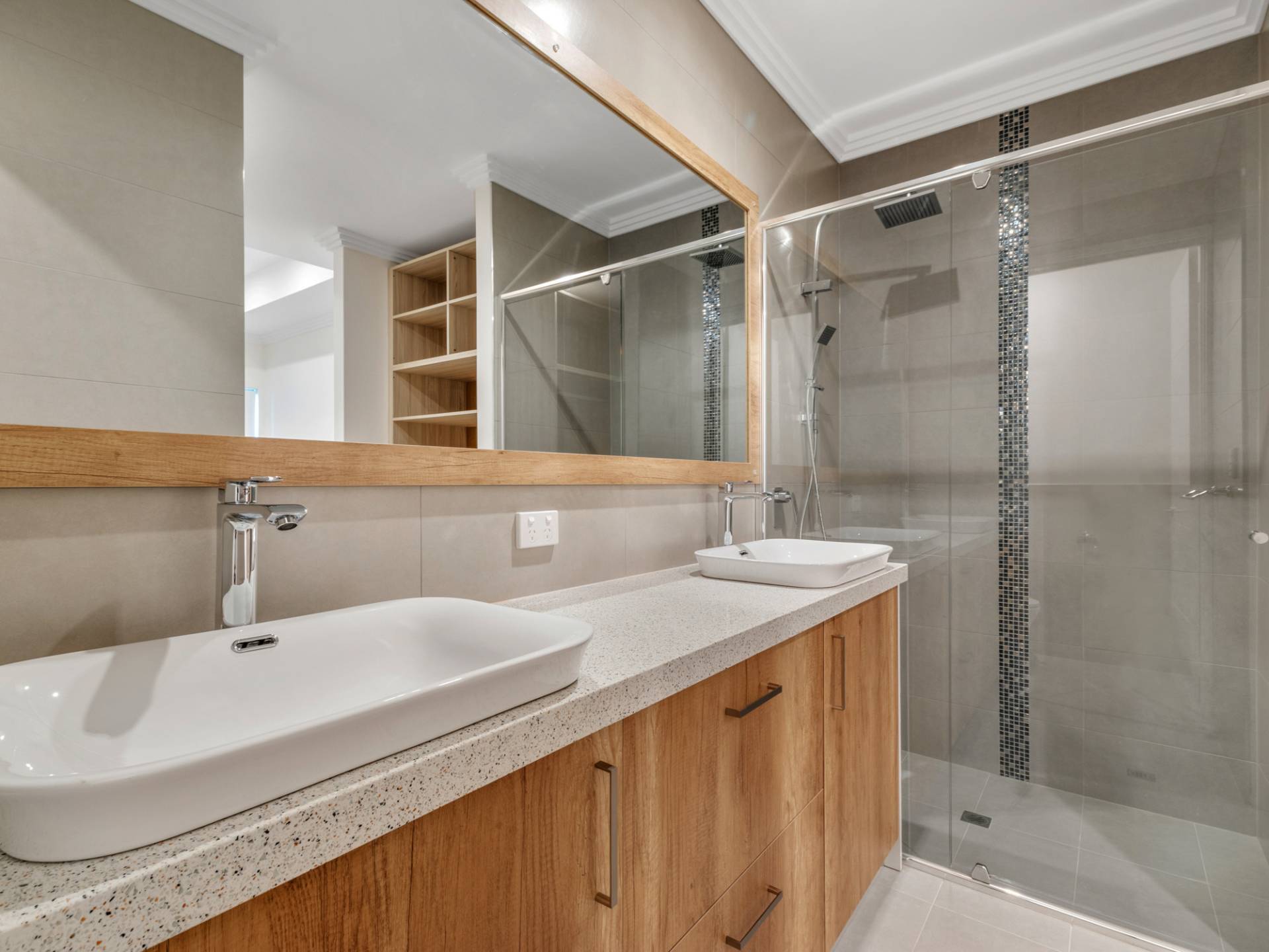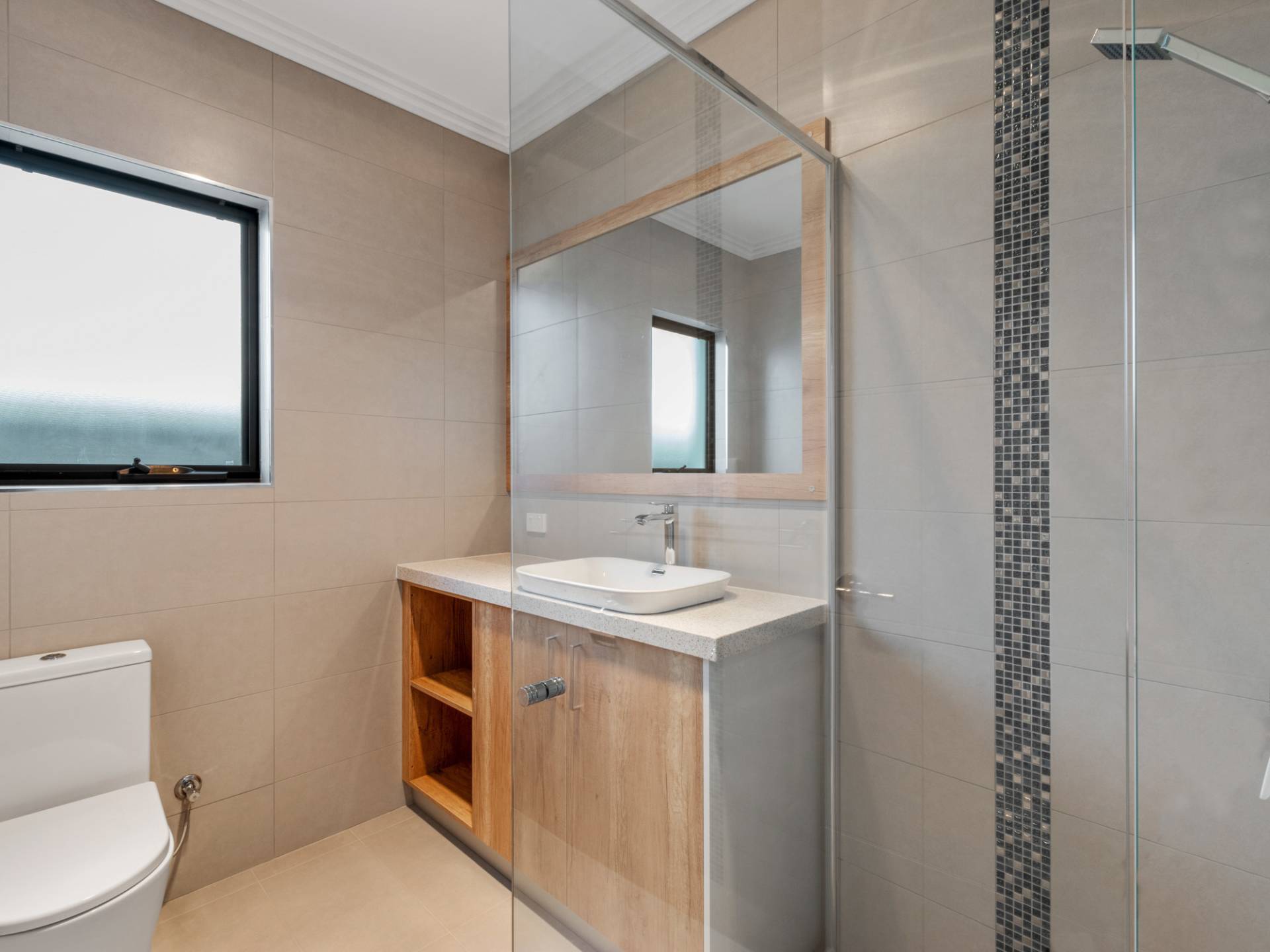 -Full height 300 by 600 tiles in bathroom