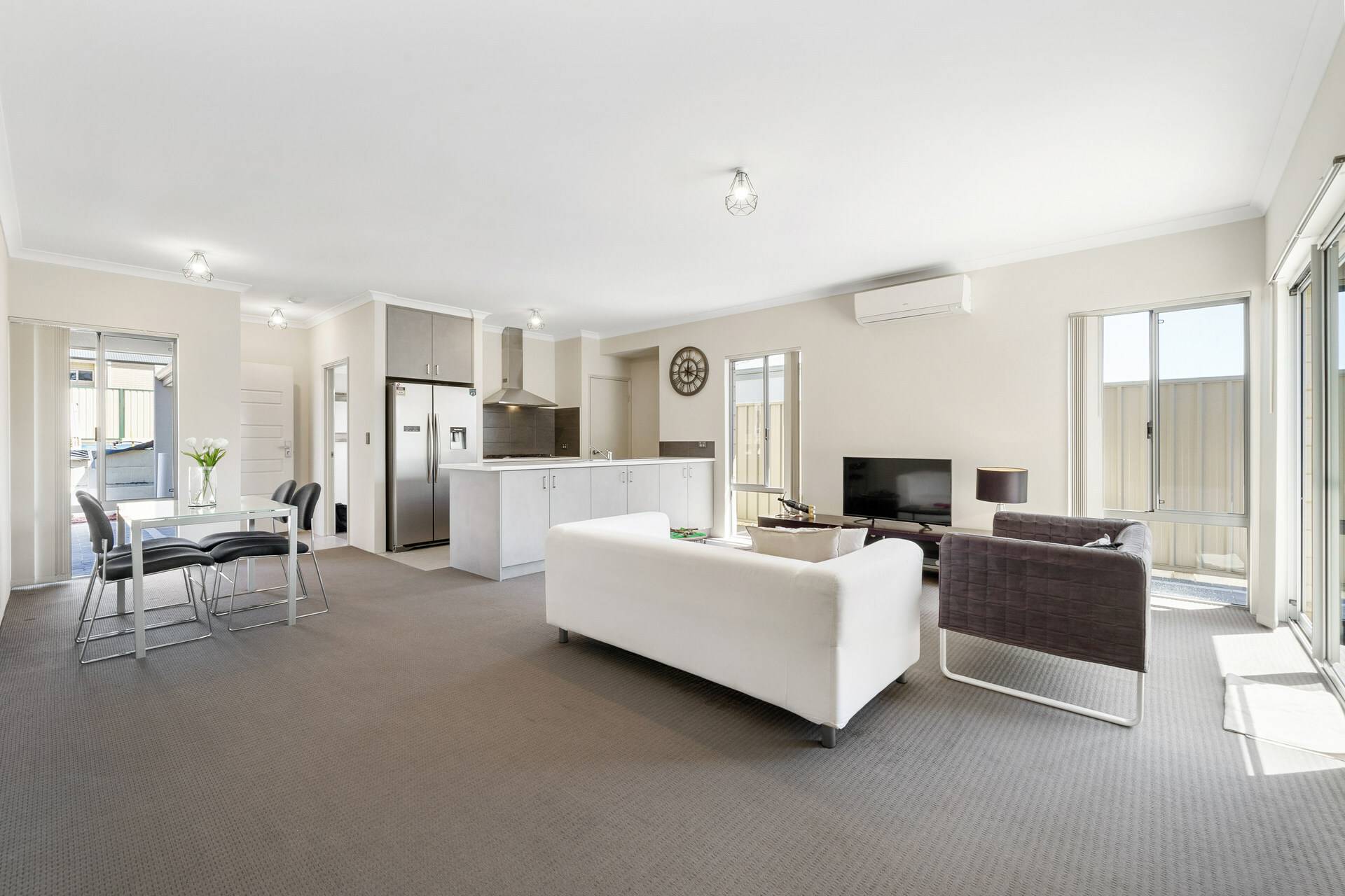 Modern and functional floorplan with open plan kitchen, living and dining.