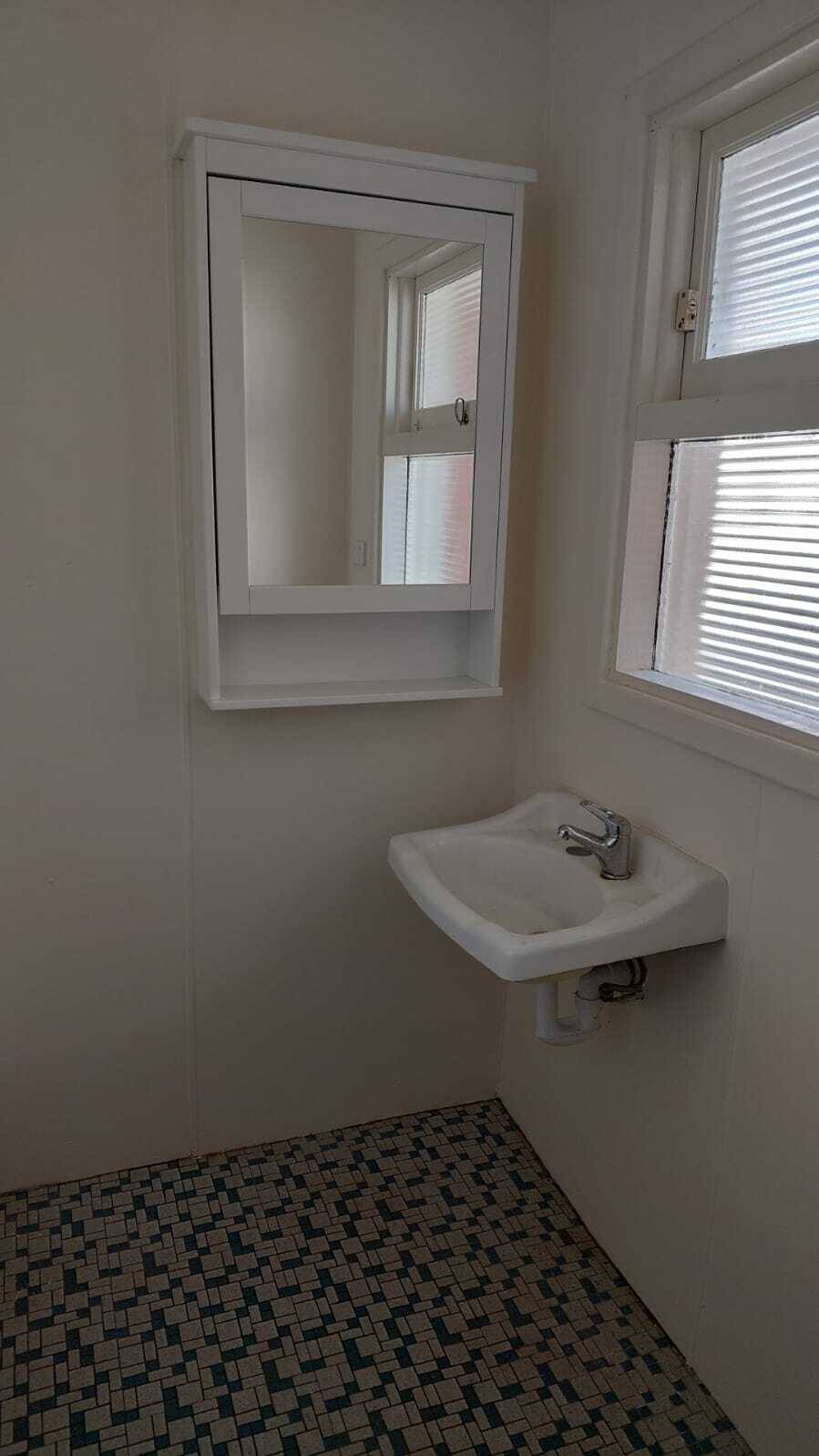 Freshly renovated laundry with new floor tiles and trough