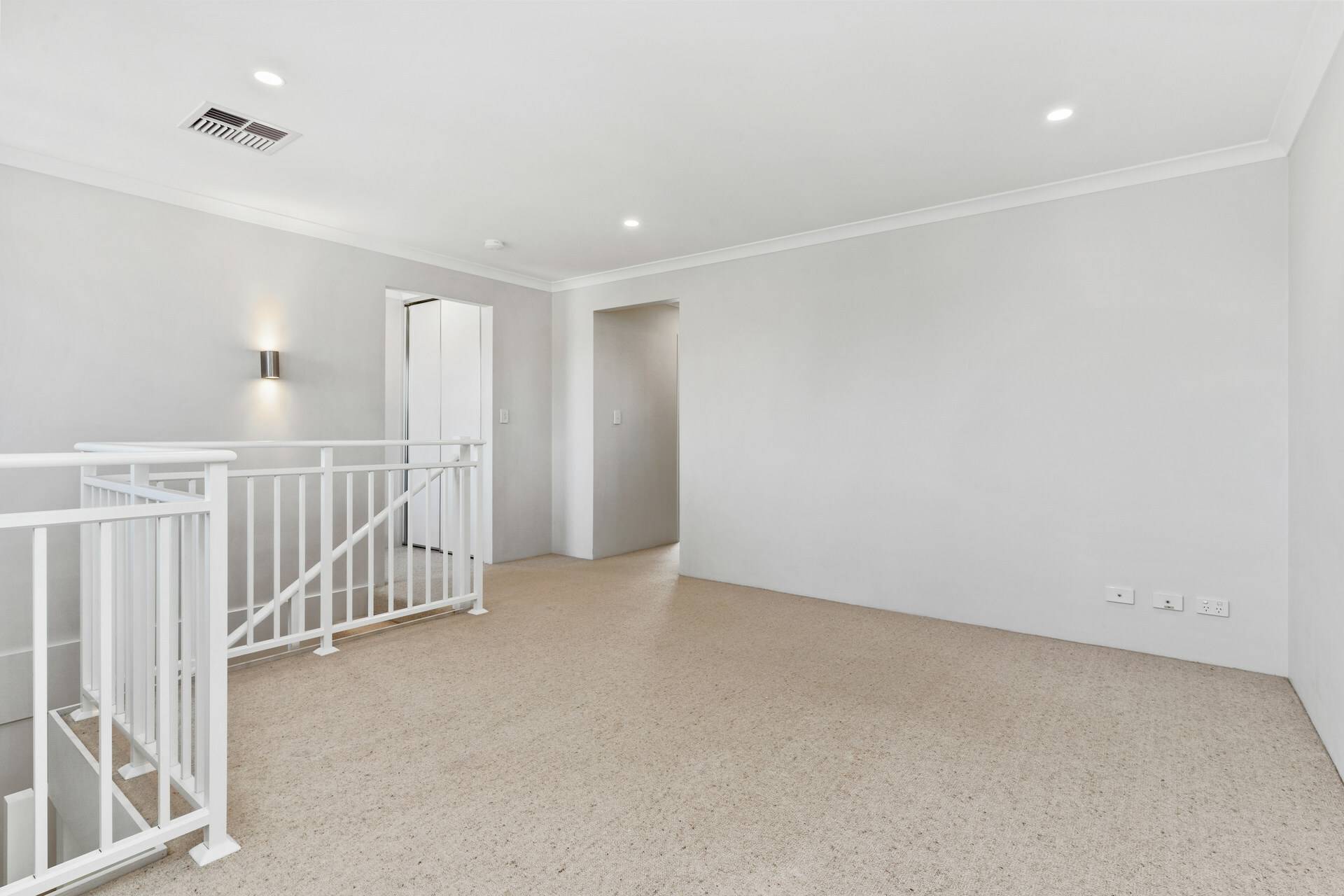 -First floor with sitting area and sliding linen storage in passageway