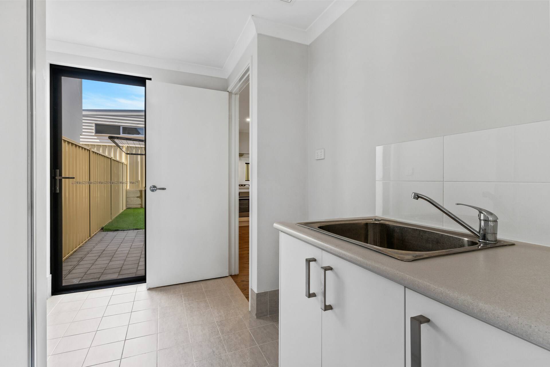 The laundry is nearly tucked away behind the kitchen and it opens up to its own private drying yard