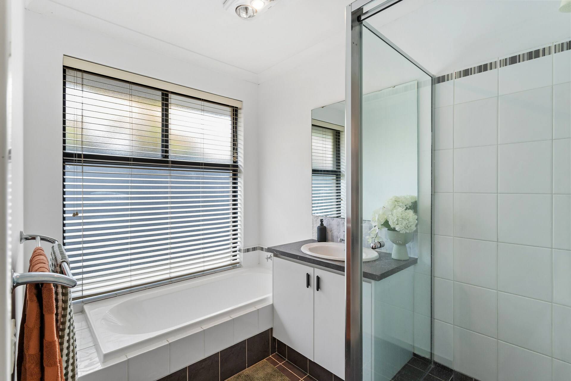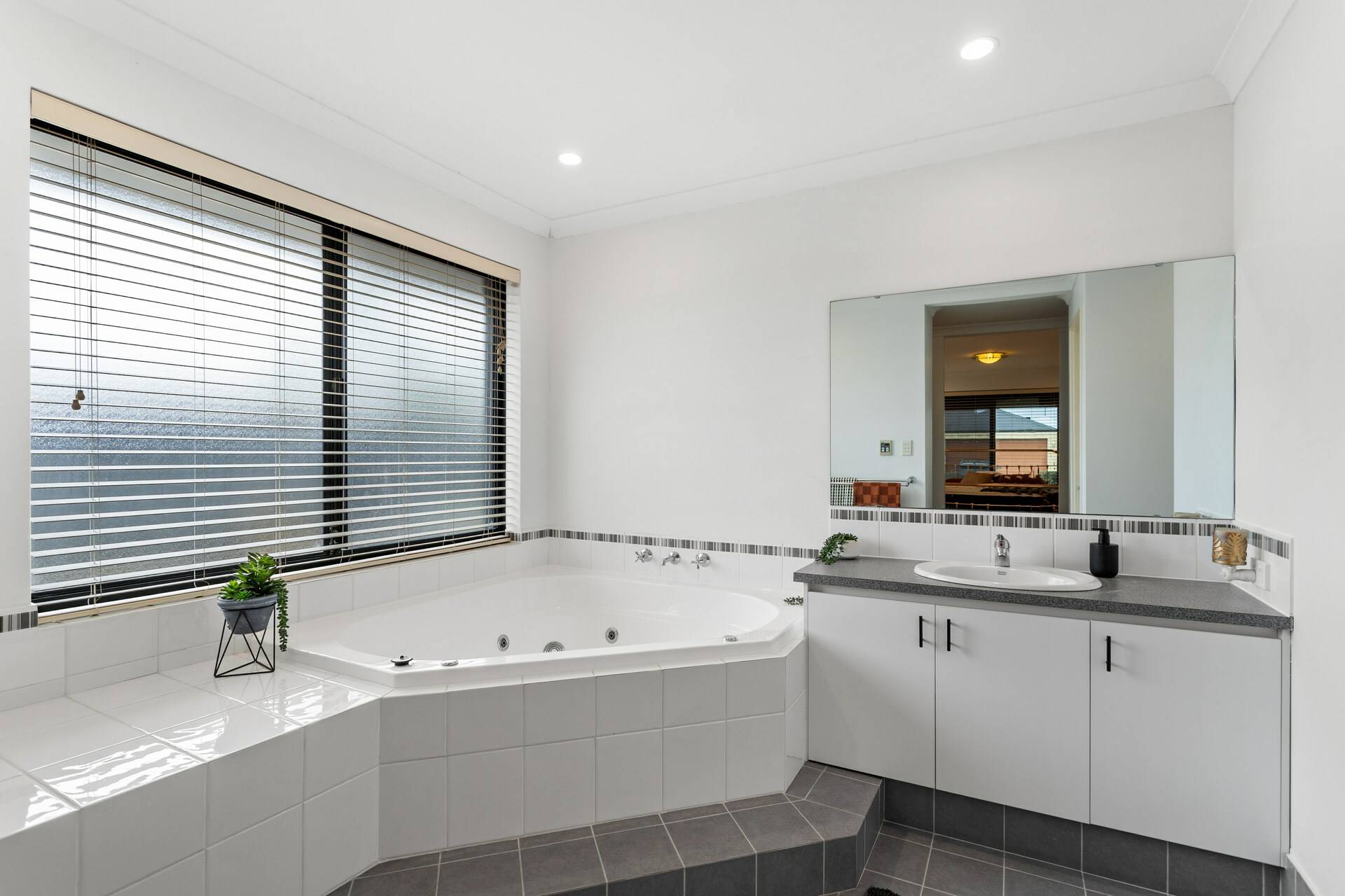 Master bedroom includes his and hers wardrobe with connecting ensuite bathroom that features a spa bath