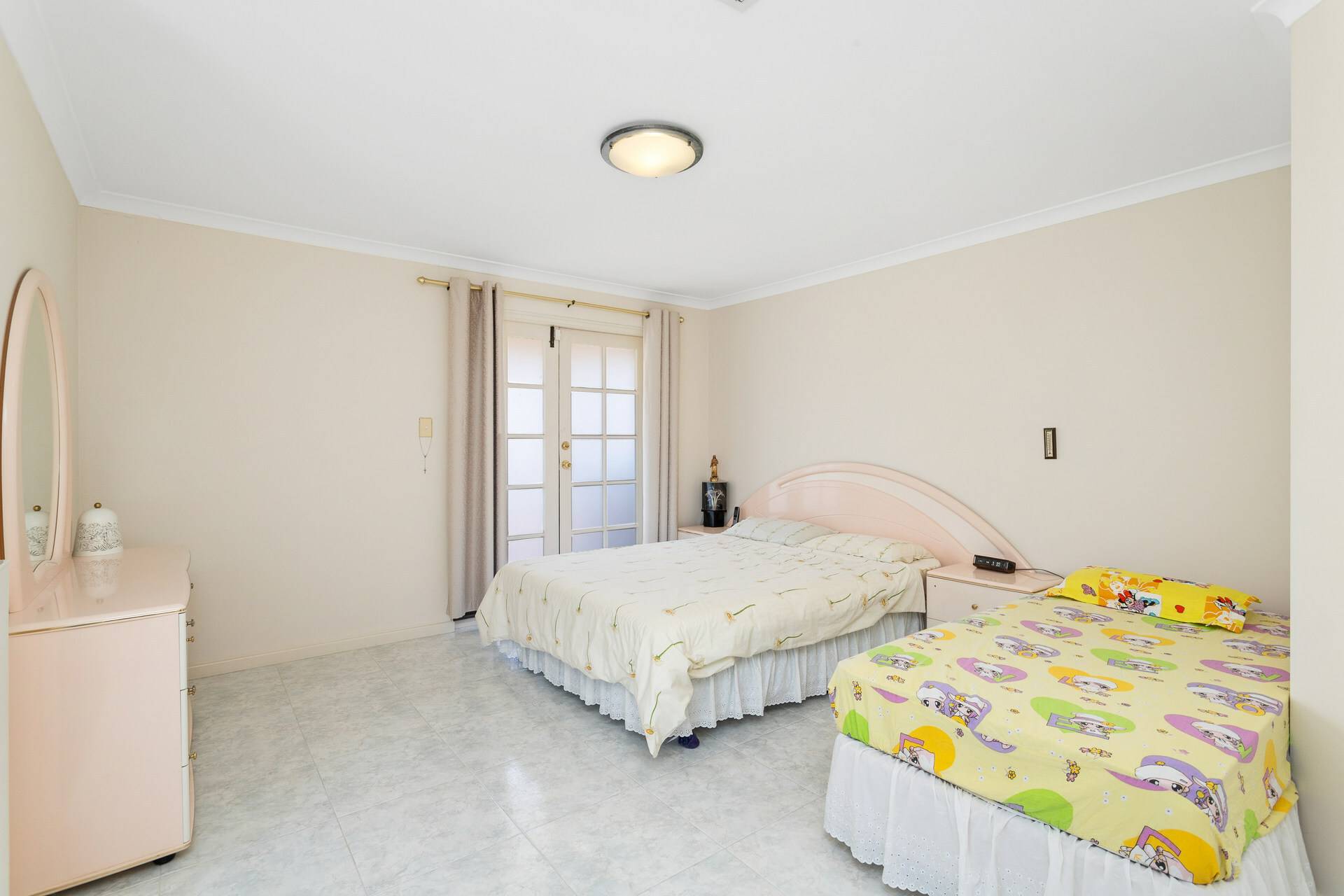 -Tiled flooring throughout including bedroom (no carpets)