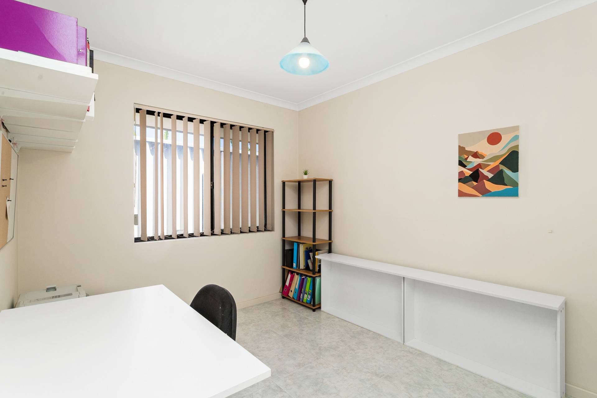 Study room with built in cupboards