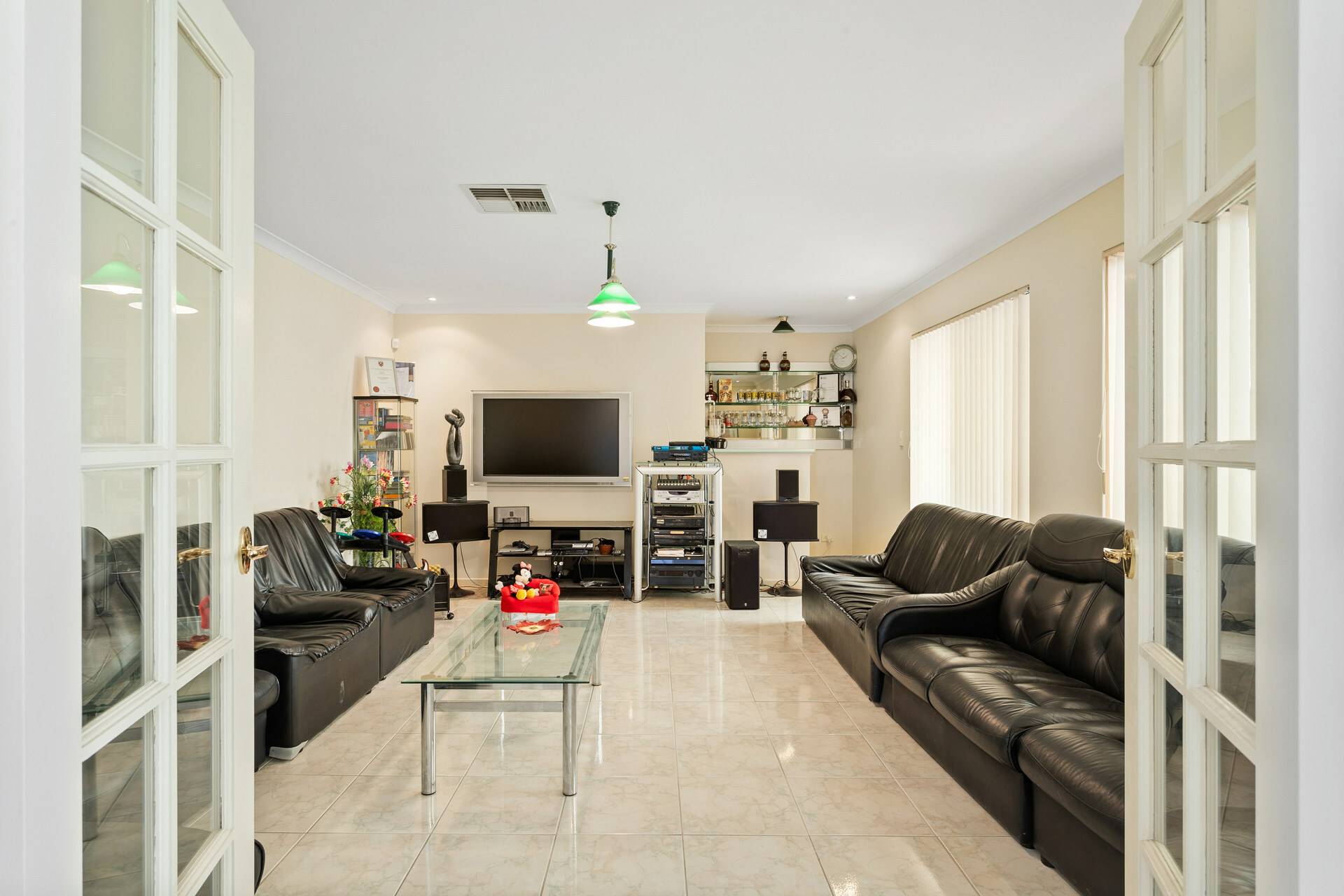 Games room with double glass doors coming off main living featuring a bar nook