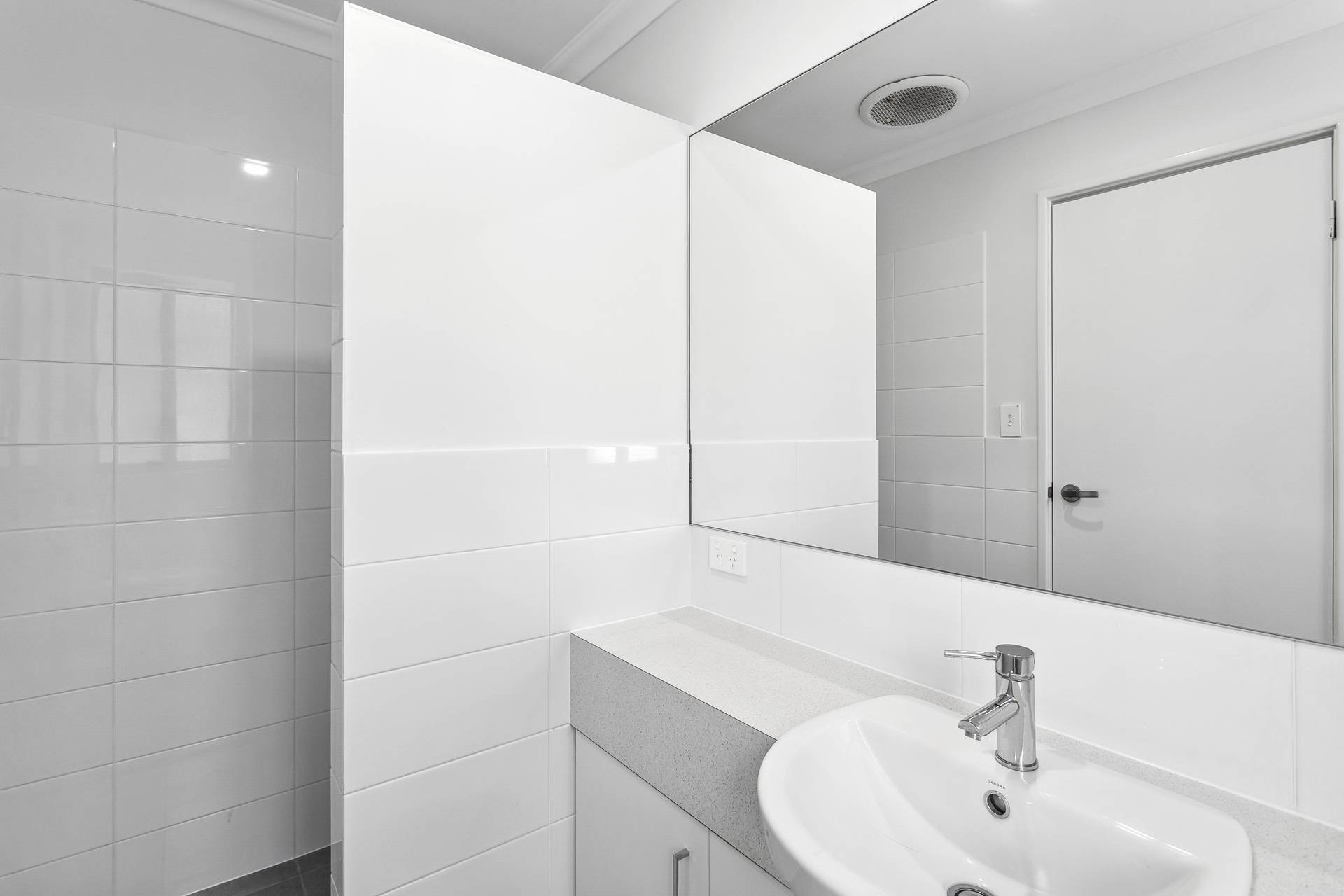 The ensuite bathroom’s shower has a brick wall as a shower screen making it low maintenance and exceptionally easy for cleaning