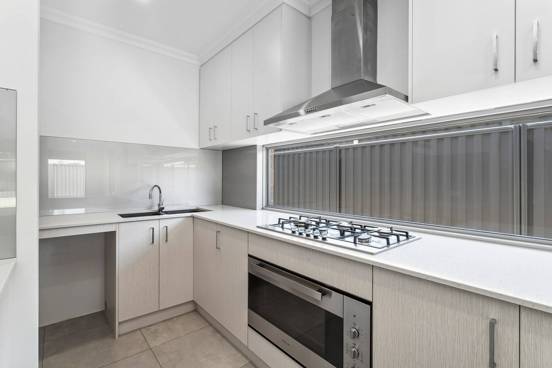 There is also a wall to wall benchtop with cabinets beneath offering ample bench and storage space