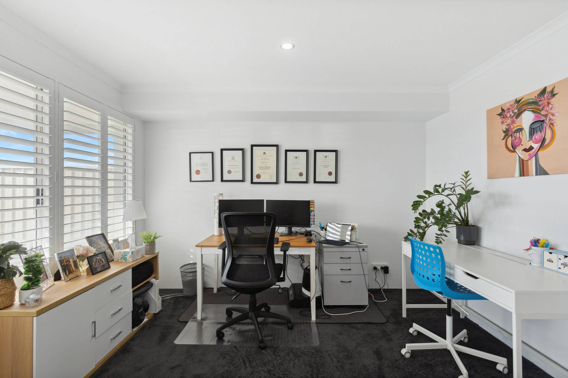 • Luxurious Plantation Blinds in study, theatre, ensuite and two bedrooms– adding a touch of elegance and privacy.