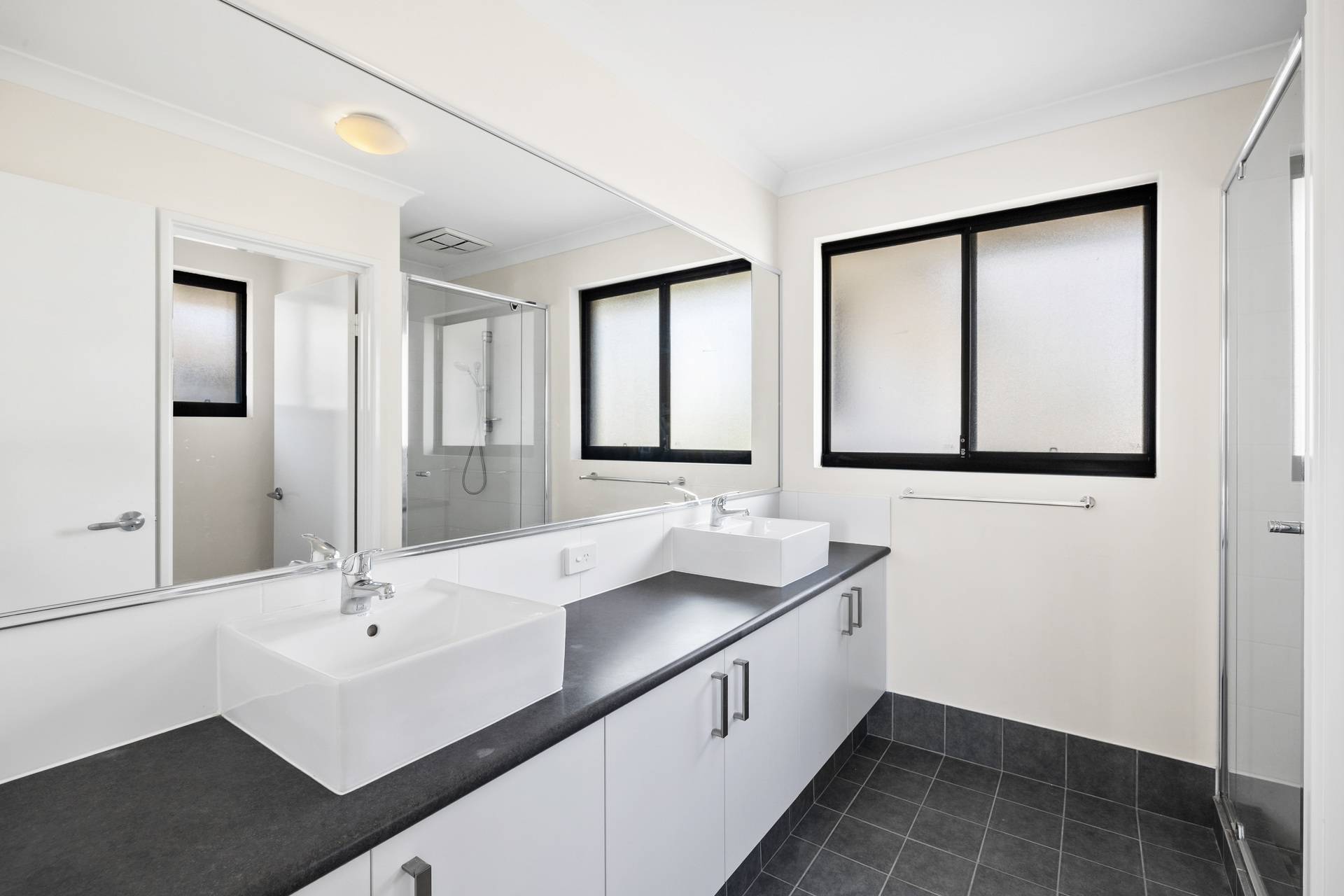 -Luxe ensuite with his & hers basins, large mirror, and ample storage