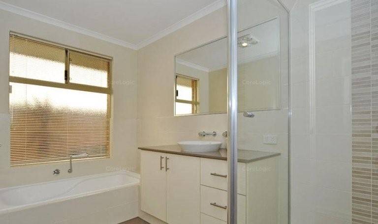 The master bedroom is fit for royalty. It is large and includes a walk in robe as well as an ensuite bathroom with 2 sinks and a bathtub for you to relax on the weekends.